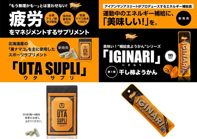 皇室献上の干し柿で作られた究極のスポーツ補給食「IGINARI(いぎなり)」、疲労をマネジメントするナマコを使用した「UTA SUPLI(ウタ サプリ)」