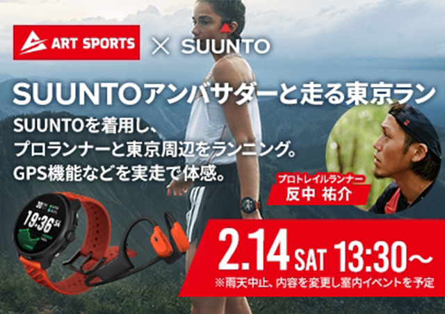 スントの最新GPSウォッチ、骨伝導イヤホンなどを無料で体験しながら、アンバサダーの反中祐介さんから使い方やランニングのコツを直接学べる特別イベント。